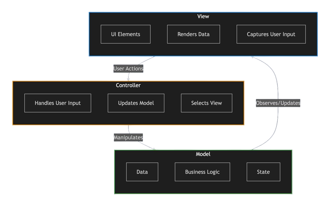 Diese Einschränkungen werden deutlicher beim Vergleich von MVC mit anderen MV* Mustern. Während MVC bei seiner Einführung innovativ war, erfordert die moderne Anwendungsentwicklung oft Muster mit saubererer Trennung zwischen Komponenten, besonders für komplexe UIs und bei der Befolgung von Prinzipien wie denen in Clean Architecture.