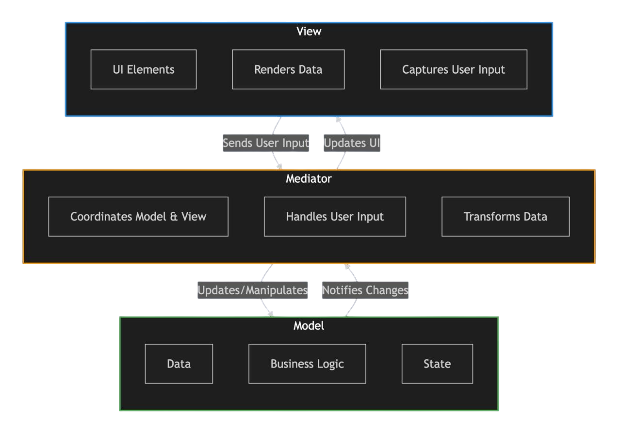 Presenter, der dieViewvomModelentkoppelt. DerPresenterbehandelt alle Interaktionen zwischen diesen Komponenten, was eine bessere Modularität und einfacheres Testen ermöglicht.