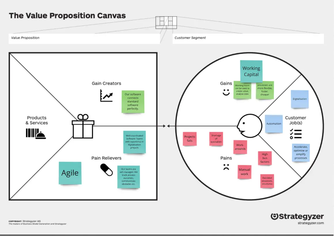 Schauen wir uns eine vereinfachte Version unseres VPC an (wir verwenden die Vorlage von Strategyzer).